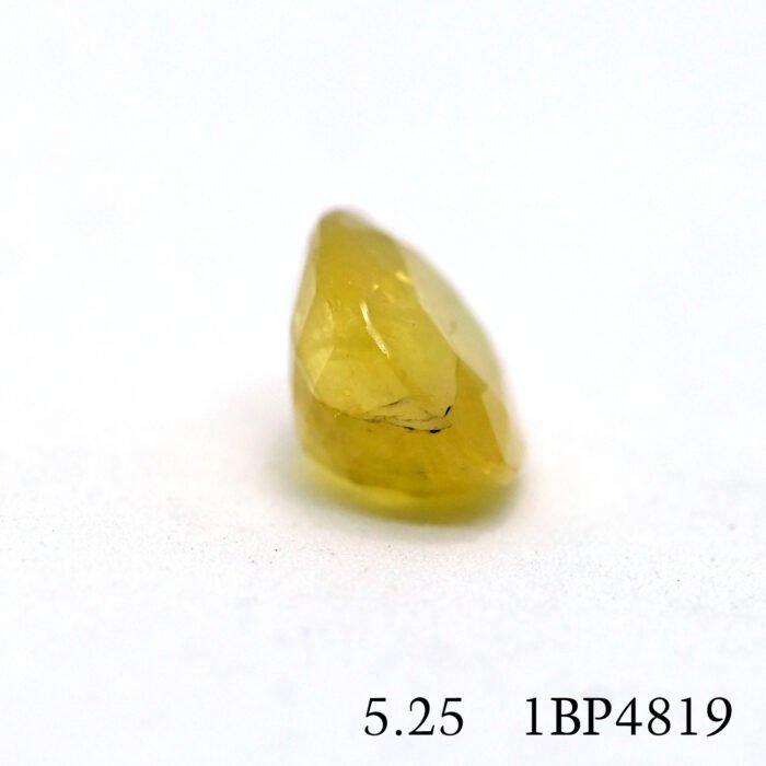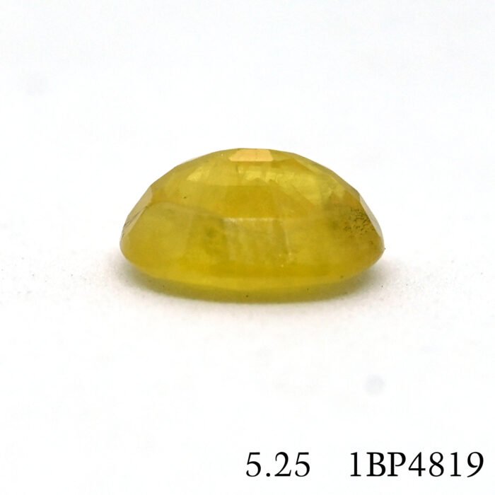 Embrace the enchanting beauty of a natural yellow sapphire, also known as Pukhraj, sourced from the vibrant markets of Bangkok. This exquisite gemstone, weighing 5.25 carats, is perfect for those seeking elegance and sophistication.